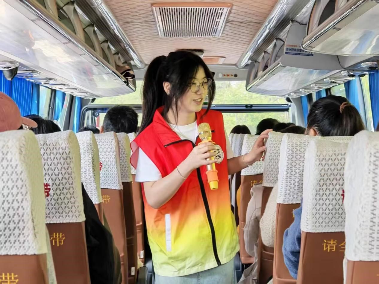 活动当天,志愿者与社区工作者、青少年及家长一同乘坐大巴前往南京科技馆。旅途中,志愿者通过猜谜语、唱儿歌、分享大学生活趣事等互动形式,活跃车内氛围,缓解孩子们的旅途疲惫,引导孩子们主动参与、大胆表达,在轻松愉悦的氛围中拉近了与孩子们的距离,为后续参观学习筑牢情感基础。