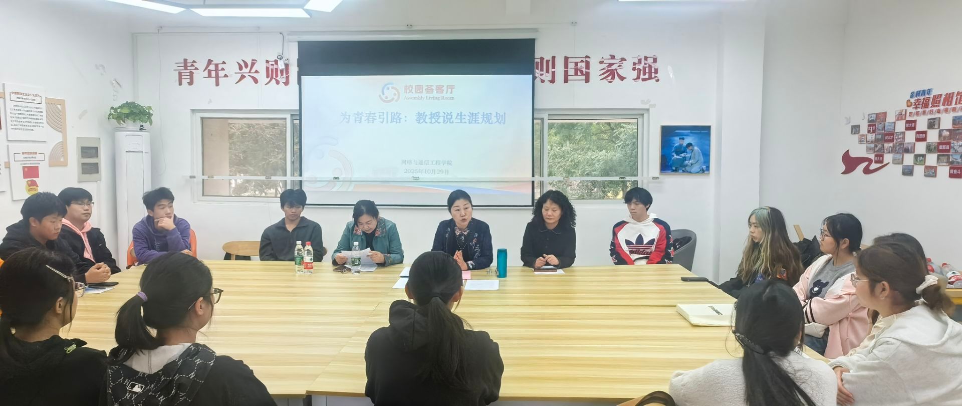 本次活动结合学科专业,精准聚焦学生在生涯规划发展中的实际困惑,答疑解惑。陈美君结合深耕通信工程教学一线的经验,从就业、考研、考公考编等不同就业途径帮学生制定了行动指南:针对找工作的同学,强调打好专业基础、着重考级考证,增强社会实践;寄语考研学生深耕专业领域、筑牢知识根基;叮嘱考公考编学子一备多考、精准选岗,必要时也可以曲线救国。樊静结合多年的教学经验,通过提问“什么是学习”和同学们积极互动,为学生们答疑解惑、提供切实可行的成长指导。